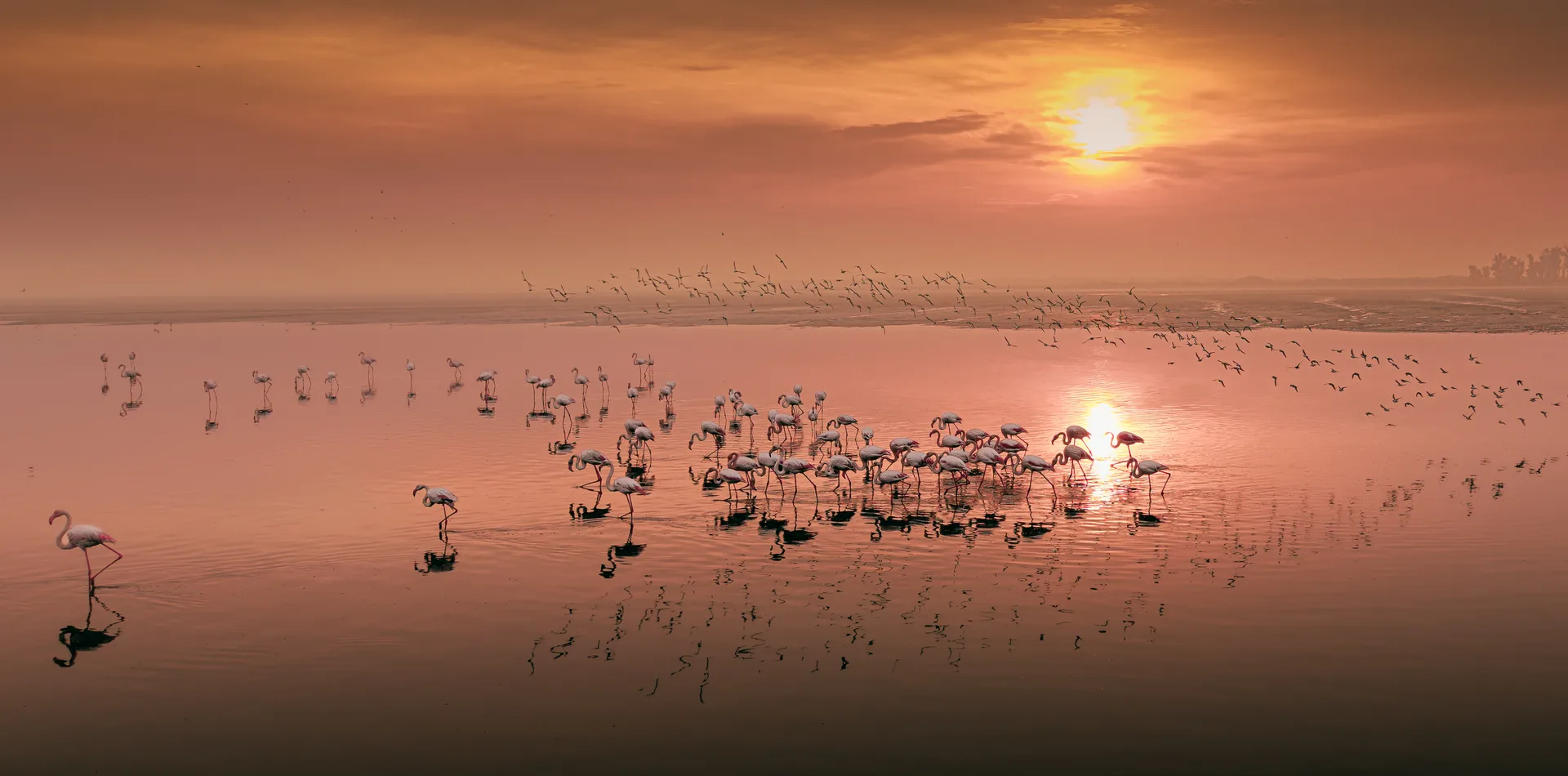 The peak windows are April–May for northward flamingo passage and early August–September for the southward return, when wader diversity peaks and juvenile pelicans join the adults on the open water. Summer brings breeding species — Black-winged Stilt, Collared Pratincole, Gull-billed and Common Terns, and the secretive Great Bittern — but the midday heat is punishing and shimmering light limits optics. Winter sees Whooper Swans and large raptor concentrations on the ice margins. The lake is accessible year-round but the two migration shoulders are the clear priority.